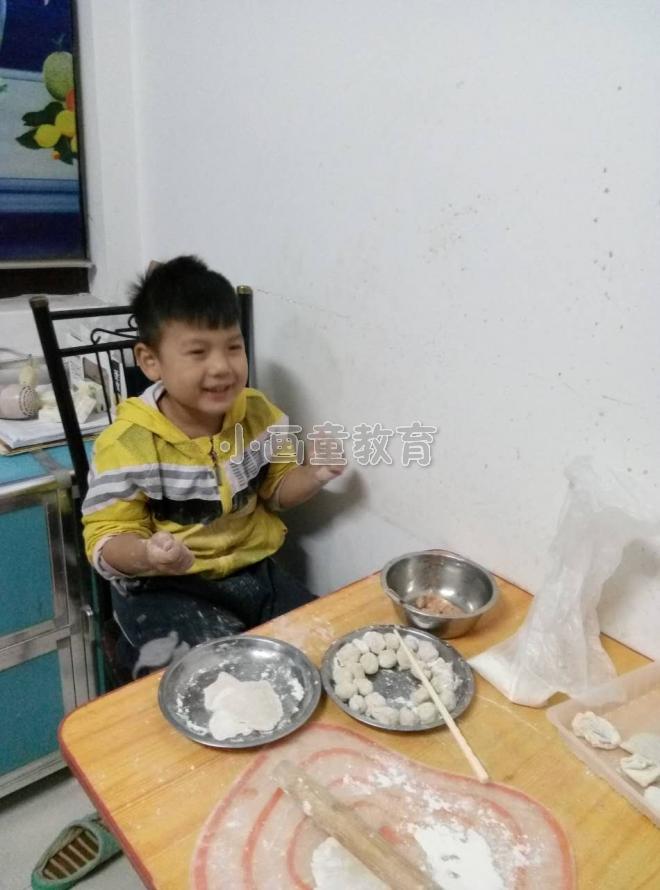 这次包馄钝,我发现小家伙做事其实挺麻利的,比妈妈和姐姐动作迅速多了!